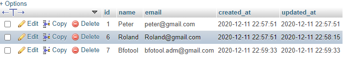 De gebruikerstabel heeft 5 records met dubbele e-mail [email protected]